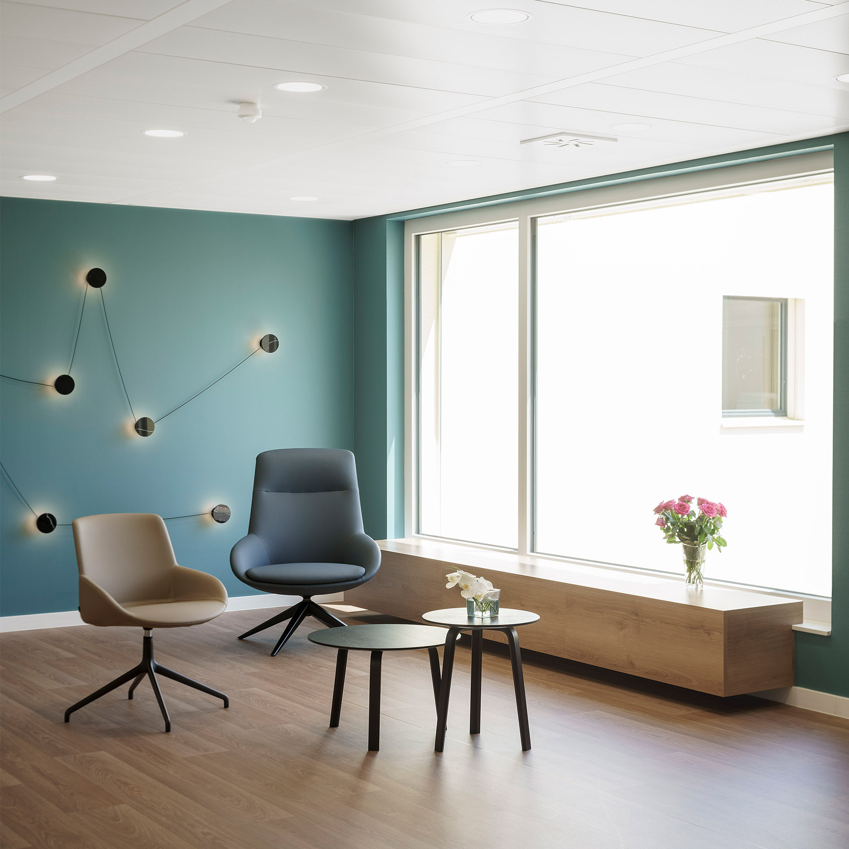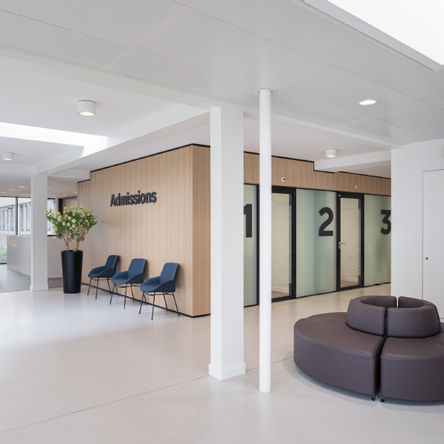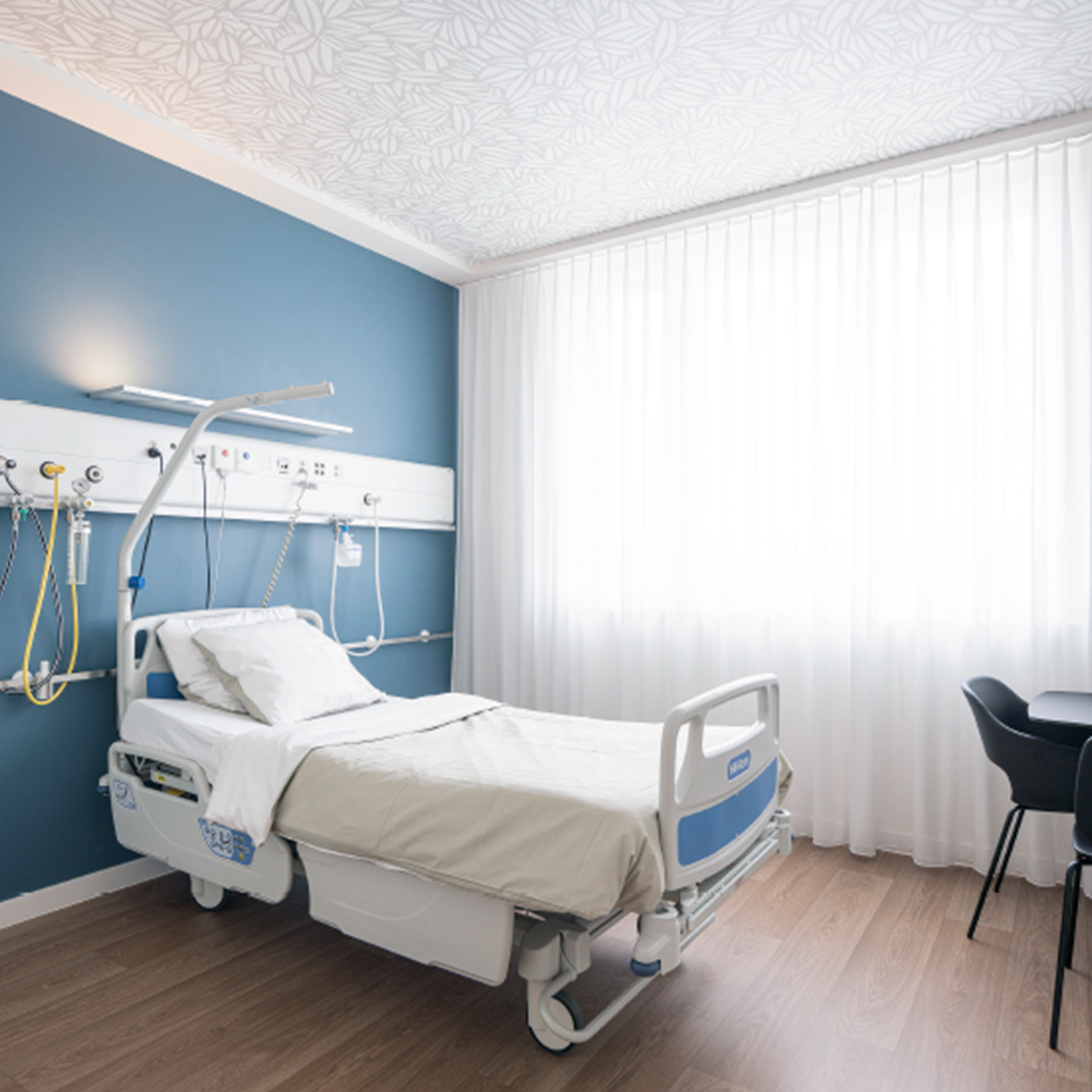 La distribution des espaces a été revue et nous avons pu investir les lieux avec des matières colorées et structurées, tout en restant dans le détail et la douceur. Chaque zone a été étudiée pour que patients et personnel médical se sentent bien.